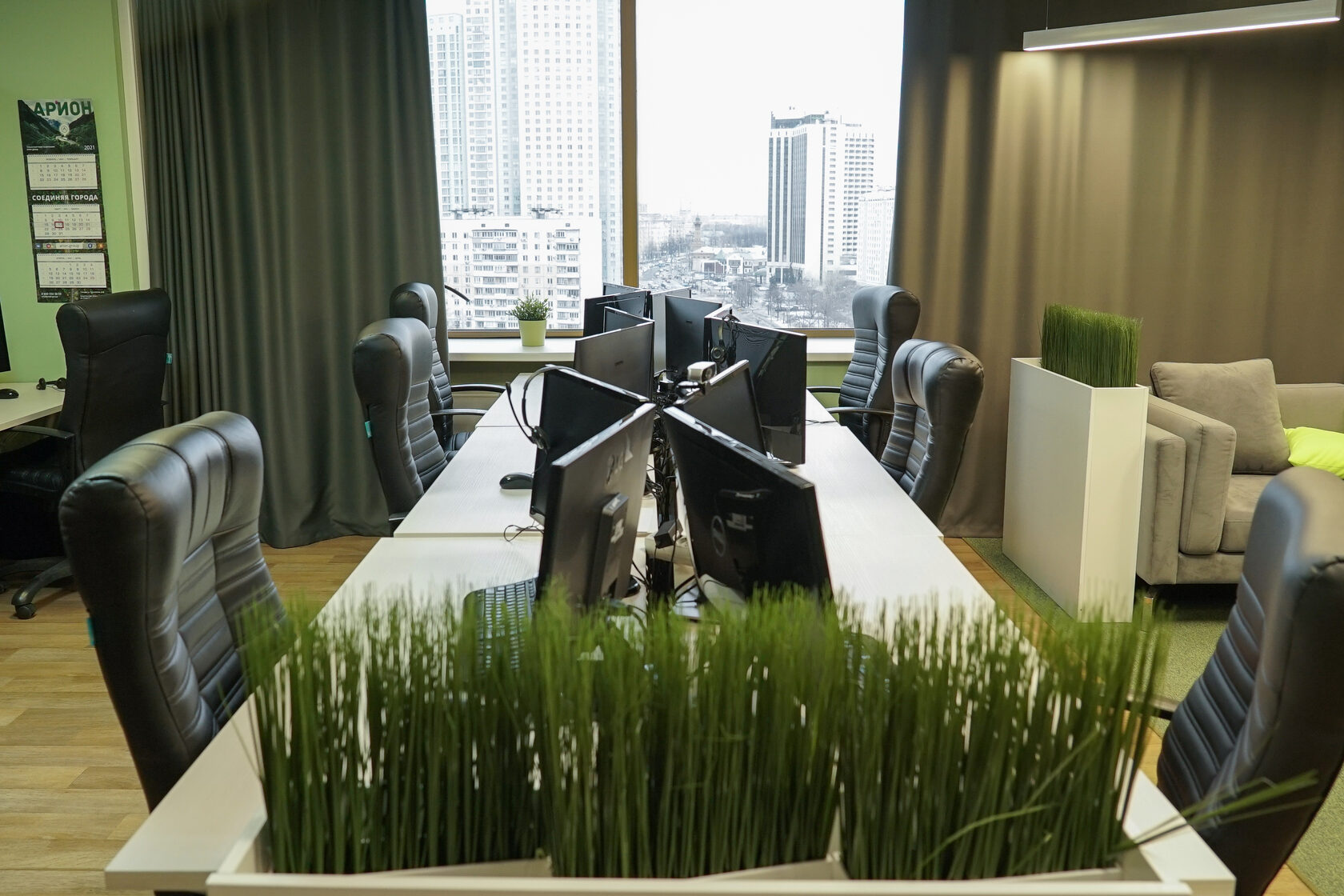 Организованное рабочее место: компьютер, корпоративная сотовая связь, наушники.